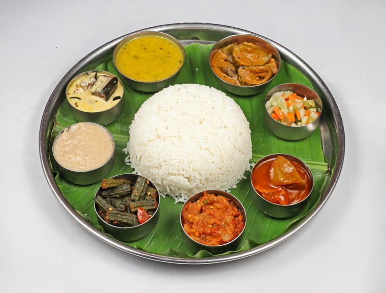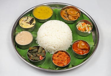 A wholesome platter featuring an assortment of rice along with Dalma delicacies uniquely crafted without onion and garlic in true Odia Style.